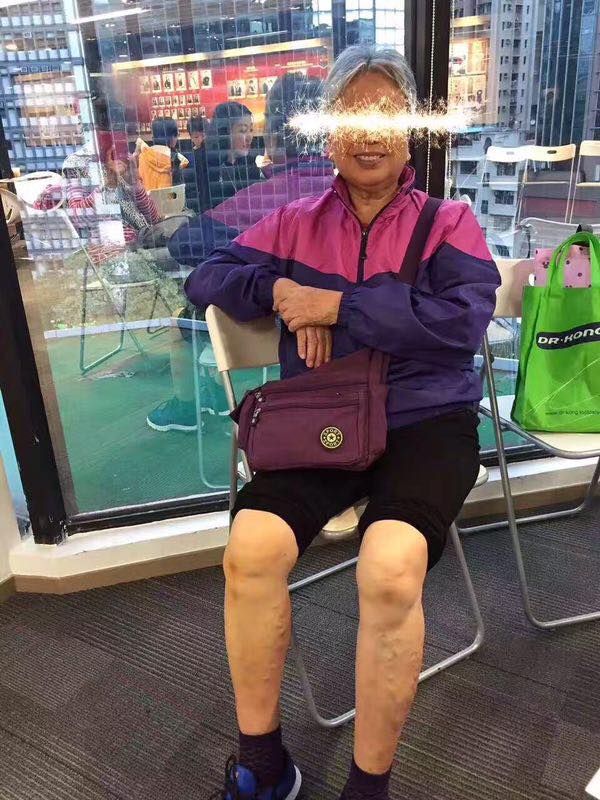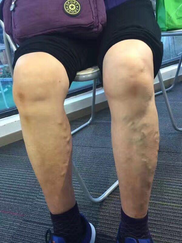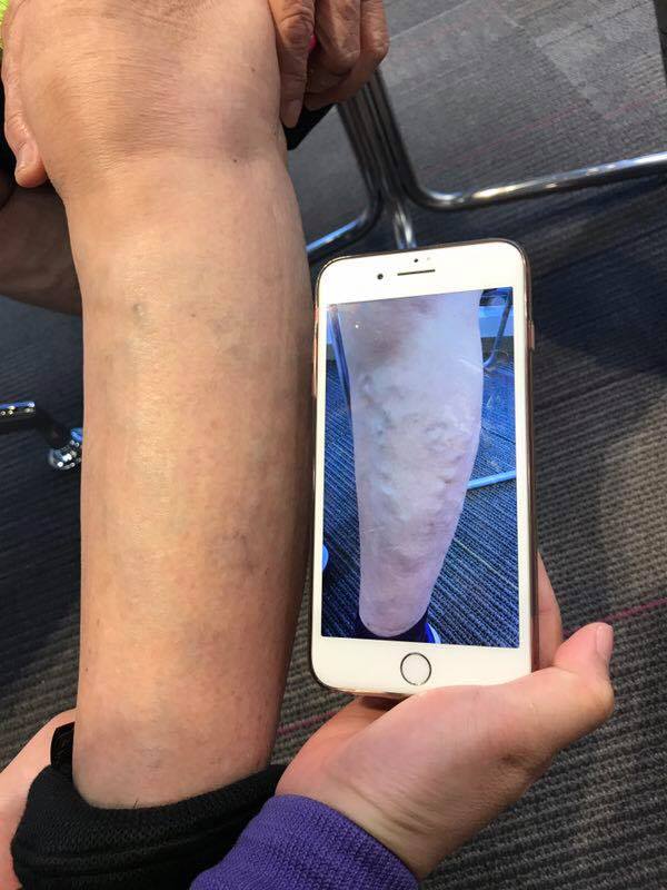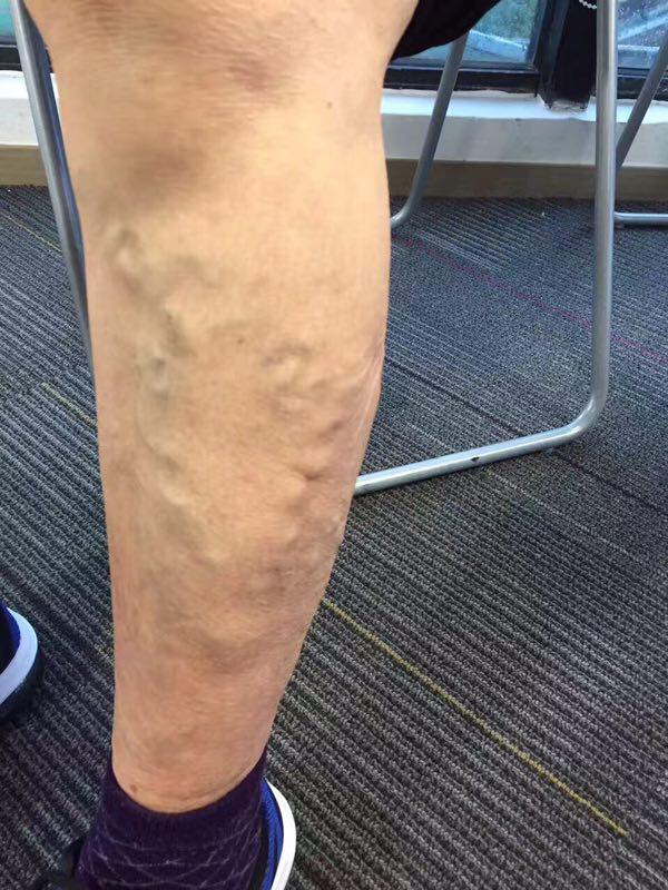 静脉曲张的案例分享,阿姨2015年10月份开始用,快两年时间,以前血管扩张凸出,现在的皮肤健康平滑