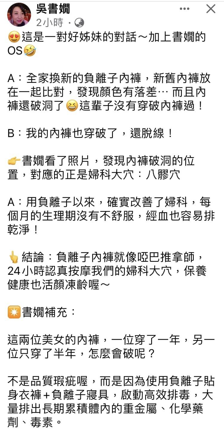 當晚我們覺得非常感動,她非常有耐心、細心、關心回答任何關於負離子、異膚、事業的問題。