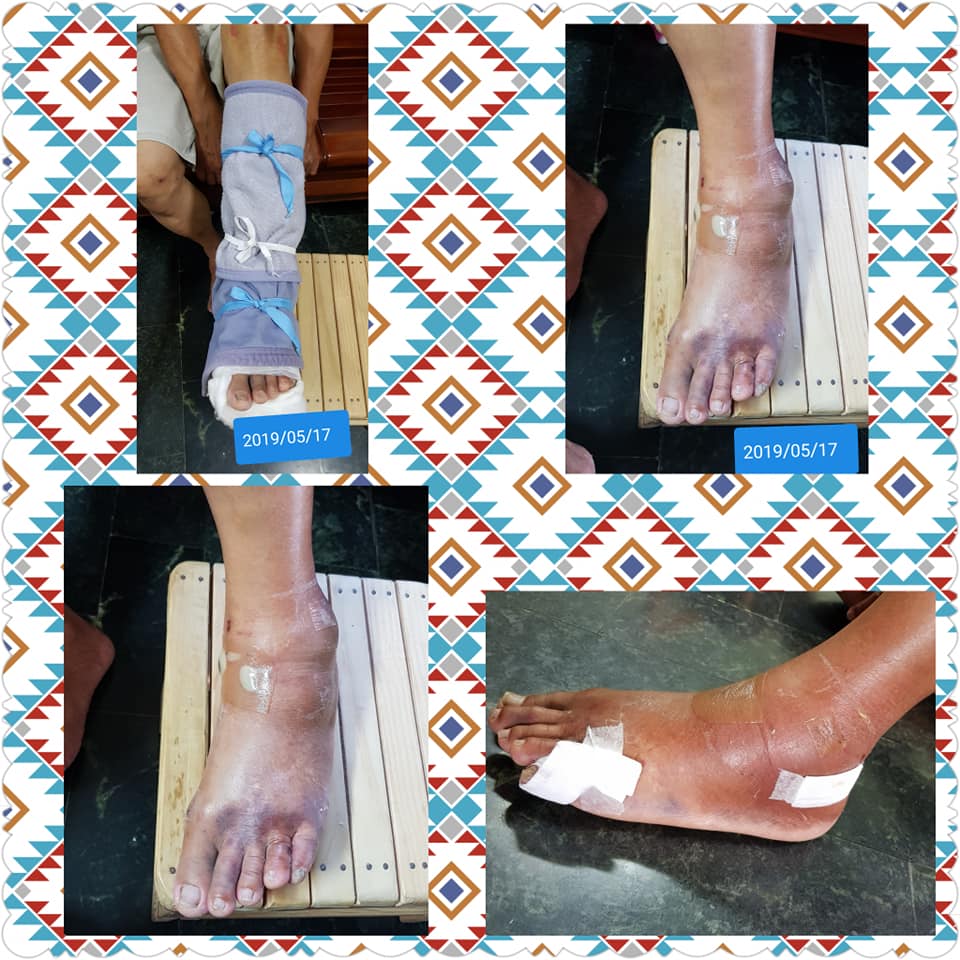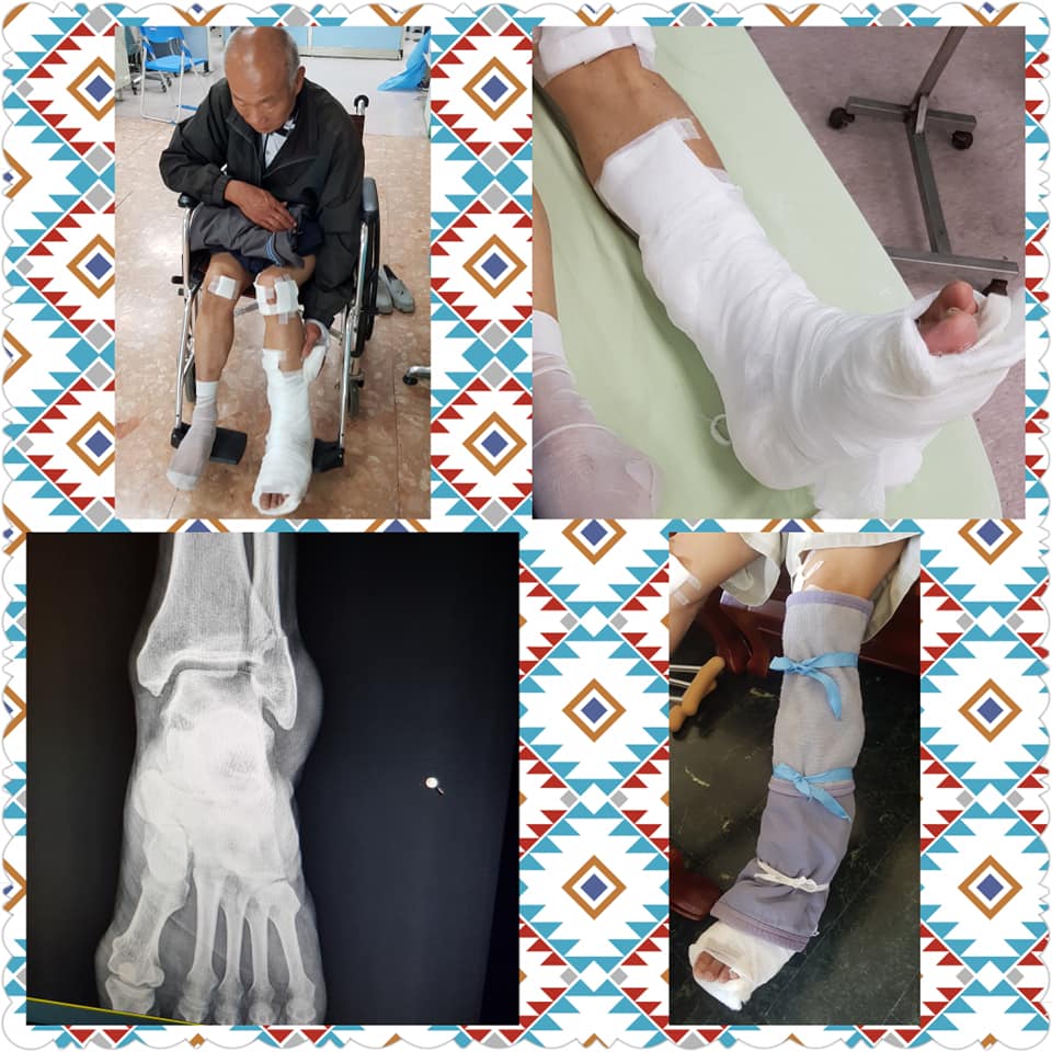 過程中~傷口及腳腫狀況恢復非常好~但在稍微放鬆之於,爸爸一波三折~