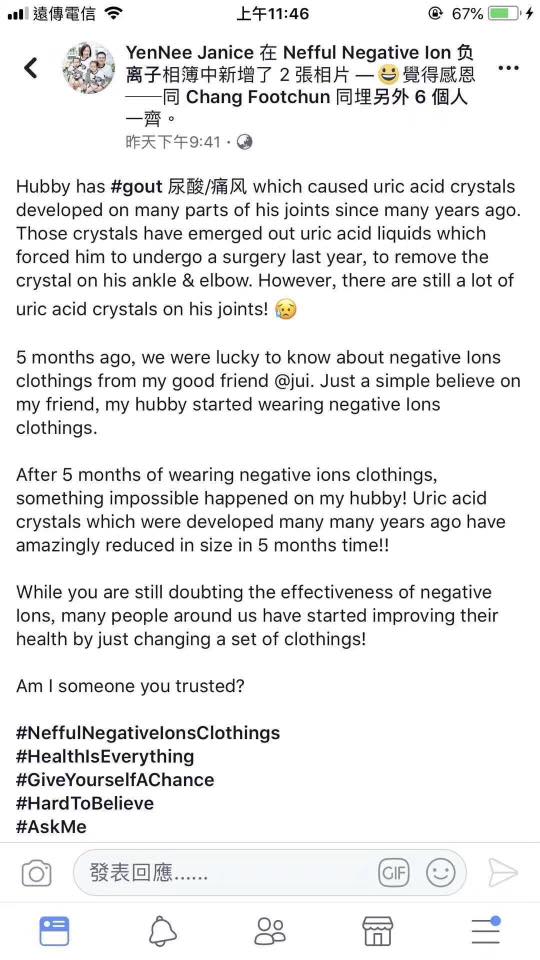 5個月前,我們很幸運地從我的好朋友@jui那裏瞭解了關於負離子的衣服。只是簡單地相信我的朋友,我的丈夫開始穿負離子衣服。
