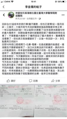 回診台大!這些年的例行事!雖不願意,但也已習慣!從一個月回診、三個月、六個月到今天回診醫師說抽血檢驗都非常正常,一年以後再回診!哇!一年以後耶!太興奮了!