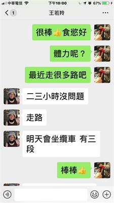 現在,姐姐完成化療、精神體力都不錯、也開始分享她的經驗、幫助她罹患肺腺癌的鄰居好友和她攝護腺癌的先生開始有品質的睡眠、每天要吃的頭痛藥也減少到一週一次,精神體力也明顯改善、原本無法自我照顧自己的鄰居先生也能簡單自理...