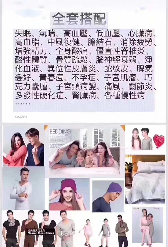 2003年2月27日,May Lin区总气喘病发,回台湾治疗。机缘巧合之下,用到一条负离子围巾,效果非常好!从当时就使用全套产品,停药至今13年,没有发作过气喘。 她的高血压,原本舒张压高于100,医生说非常危险,容易中风。使用全套产品之后逐渐停药,血压完全正常。而且体重也减轻30磅(13公斤)。
