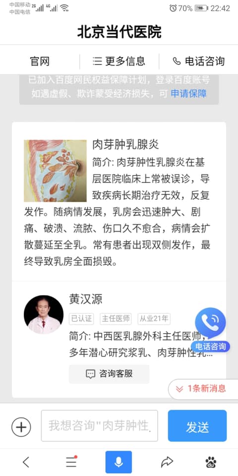 2年前我自从得了这个乳腺科中叫世界性难题的肉芽肿性乳腺炎后,我求遍中西医,西医的治疗方法是,抽脓—激素—消肿块,中医的治疗方法是一天三顿的中药+抽脓+针灸+消肿块,中西医治疗虽然都能消掉肿块,可反复发作经久不愈的让我抓狂,有很多人都会怀疑是癌,而我也知这不是癌,这是比癌还难治的病—叫不死癌。