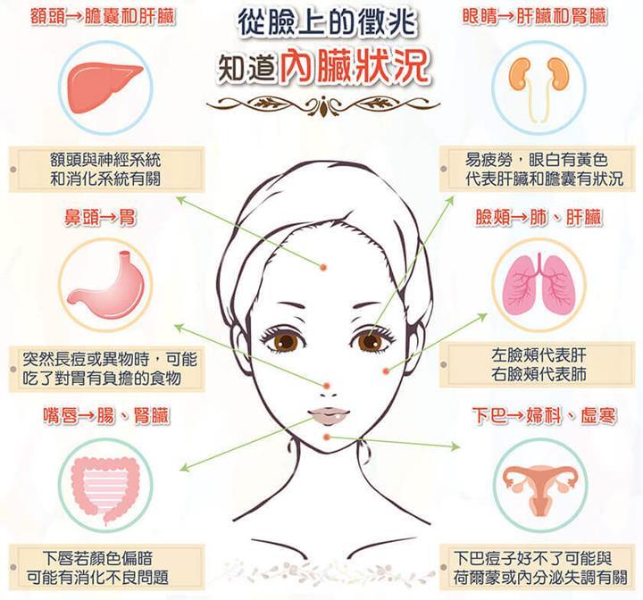 如果你發現臉色發黑,就得考慮是不是腎臟的毛病。腎臟具有過濾的功能,能調節體內水分的代謝水平。如果不幸,你的腎臟過濾功能降低,就會使廢物長期堆積在體內,使皮膚呈現為黯黑色。一開始的表現是在皮膚較薄的地方出現色素沉澱,慢慢地會向四周擴散。建議你嘗試一下韓國流行的三日蔬果排毒法:每天喝大量的水,吃新鮮蔬果,避免肉食,你體內沉積的廢物很快就能排出。
