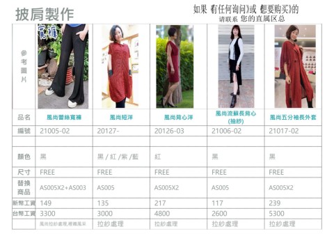品名 風尚蕾絲寬褲 風尚短洋 風尚背心洋 風尚五分袖⾧外套
