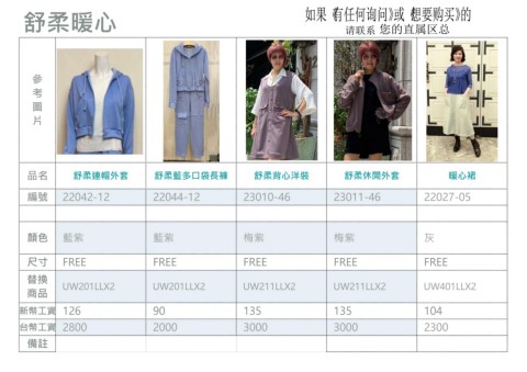 品名 舒柔連帽外套 舒柔藍多口袋⾧褲 舒柔背心洋裝 舒柔休閒外套 暖心裙